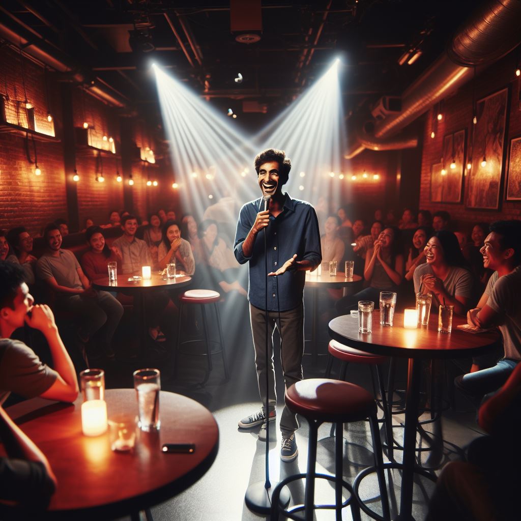 Comedy club scene from Bing AI, using “Designer” image creator.