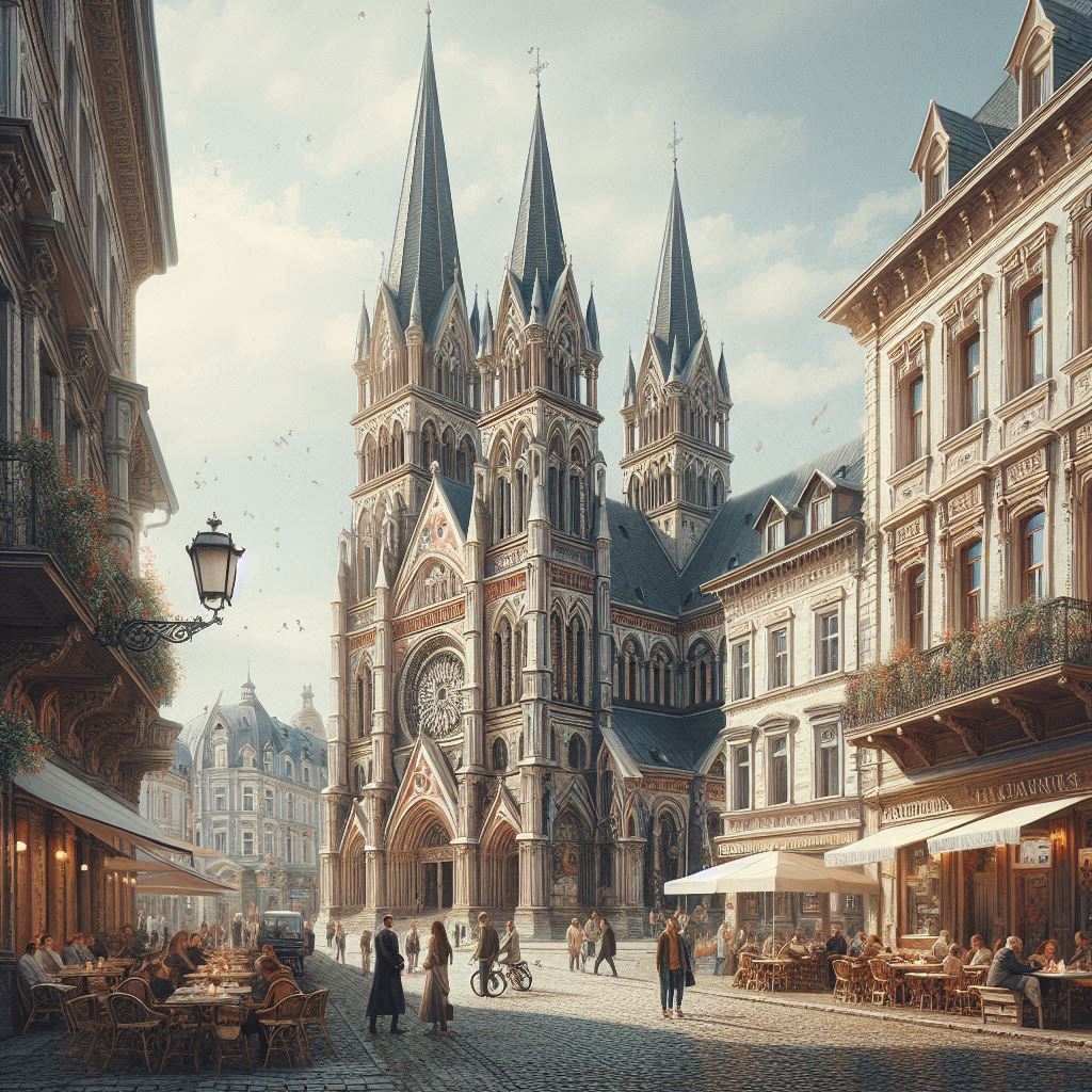 Image from Microsoft Bing’s AI Co-Pilot, based on the command: Create a church in the center of an old European town.